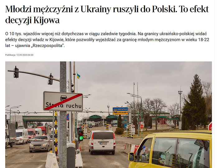 Czas otrzeźwienia w ocenie Zeleńskiego mamy już od dawna. Bezczelność roszczeń i jego prowokacji wobec Polski nie pozostaje bez wpływu na postawy Ukraińców w Polsce – syndrom Zeleńskiego będzie się potęgował wraz z napływem fali młodych, tych w przedziale wieku 18-22 którym ten zaofiarował niedawno swobodny wyjazd z kraju. Rzeczpospolita donosi dziś na portalu, że “Młodzi mężczyźni z Ukrainy ruszyli do Polski. To efekt decyzji Kijowa”. Skala zjawiska jeszcze niewielka ale potęgującą się.