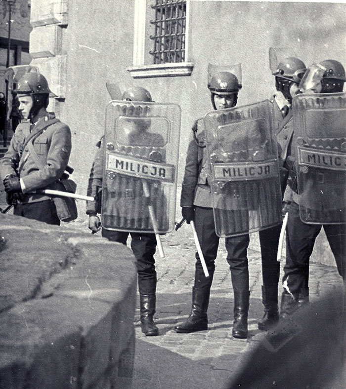 ZOMO podczas pacyfikowania demonstracji 31 sierpnia 1982 w Warszawie.