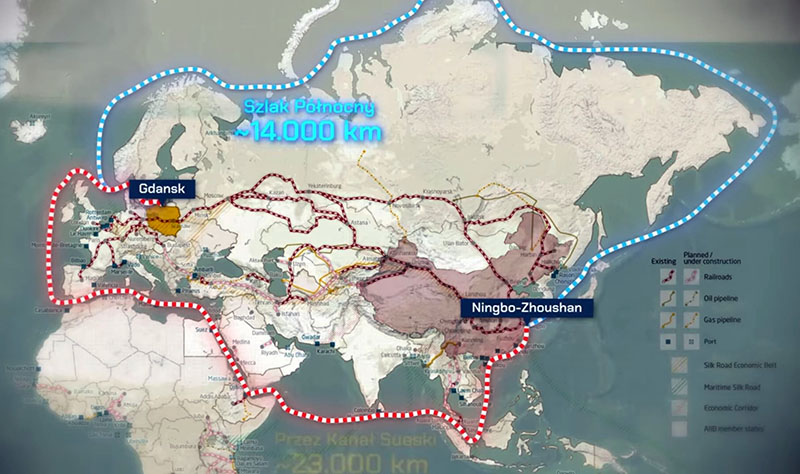 O znaczeniu Polski czyli z Chin do Gdańska - porównanie długości tras. Fot: Globalista.